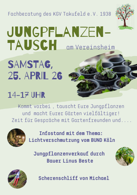 Sonntag, 24. April, 11-14 Uhr Jungpflanzentauschbörse rund um das Vereinsheim